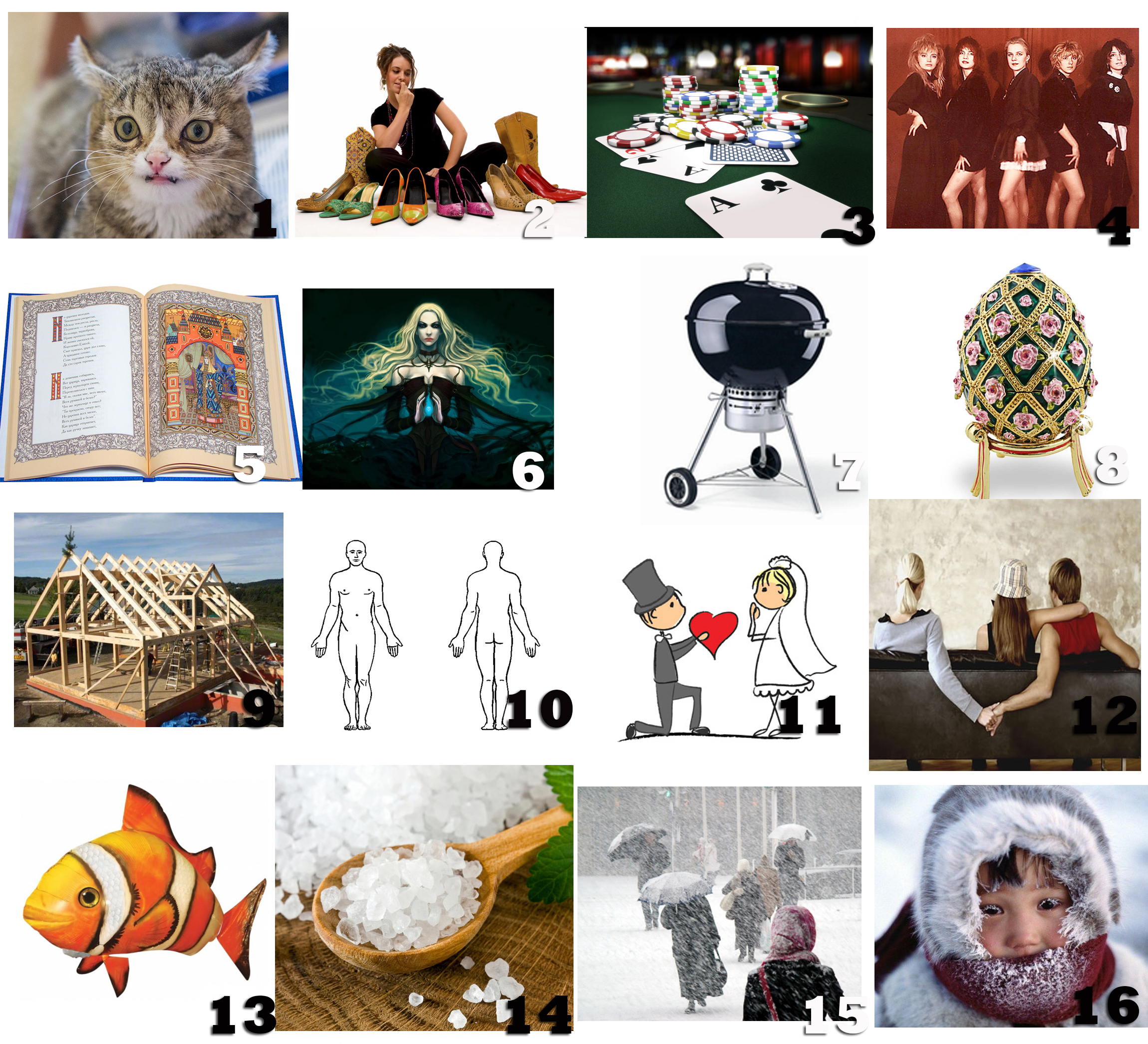 1. Фотоальбом 2. Орех 3. Кощей 4. Игла 5. Счастье 6. Любовь 7. Успех 8. Деньги 9. Гамма 10. Фальшь 11. Отвертка 12. Треугольник 13. Будка 14. Гаджет 15. Катастрофа 16. Балл Подсказка №2 для всех (2 часа) 17. Память 18. Бессмертие 19. Семья 20. Карьера 21. Нота 22. Инструмент 23. Телефон 24. Землетрясение Подсказка №3 для всех (2 часа 30 минут) 25. Вечность 26. Жизнь 27. Музыка 28. Вибрация 29. Время 30. Звук