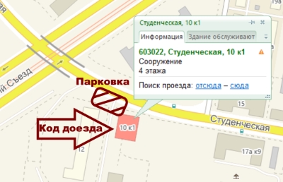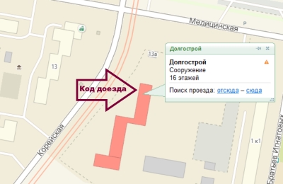 Код доезда: на входе 1го подъезда (как указано на карте)