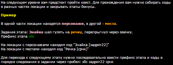 Мне в руки попали данные по допросам четырёх подозреваемых. Надо почитать их и выяснить, кто преступник. Читать все я, конечно, не стану, ведь я уже знаю, кто из них точно не виновен... Это финишная прямая, настало время собрать все улики и поймать преступника! Перед вами 4 допроса 4ёх подозреваемых. В конце прохождения каждого квеста будет указано, где находится подозреваемый (безметочный код). Так как преступник всего один, то и уровень закроет один код (три остальных кода существуют, но уровень не закроют) Если вы уверены, что кто-то из подозреваемых точно не виновен, то тратить время на прочтение его допроса (прохождение квеста) смысла нет Играет 1 подъезд и 4-7 этажи Этаж № - 4 места Этаж № - 5 действия/события Этаж № - 6 предметы Этаж № - 7 персонажи Правила прохождения квеста Пройдя каждый квест вы получите местонахождение кода подозреваемого, а также цифры антиперебора Формат полевого кода подозреваемого: слово Формат кода подозреваемого: слово123