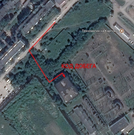Код доезда на углу здания по стрелке. Советуем на эту локацию отправлять только двоих игроков. Куда ехать остальным, будет известно после ввода кода доезда.