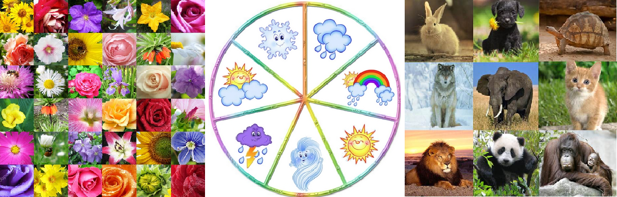 На картинках растения, животные и погода. Подсказка №2 для всех (5 минут) А если совсем не догадались, то мы загадали трех фей - Флору, Фауну и Меривезу.