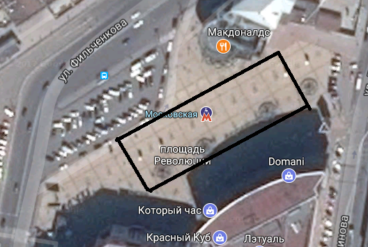 "Пусть матч начинается!" Играет отмеченная область в сквере на проспекте Ильича. (напротив домов 9 и 11)