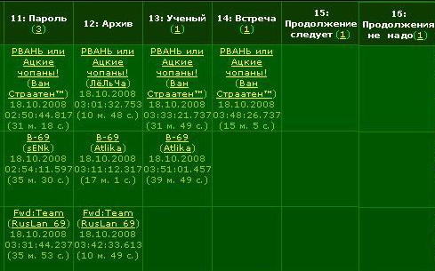 camelot-first: а если ещё штабные будут в последних 3 заданиях то это будет писдец login: Метки пусть будут у Дозора. Настоящий схватчик чувствует места жопой! не, ну я может почувствовал бы(43а с задания взял), но в поле-то новички одни, третью игру играют... у тебя на прошлой нашей игре тоже были новички а было это вроде давно!!! ты их кажды раз меняешь!? и вообще когда мы сделаем игру для новичков мы тебе дадим знать!!!!